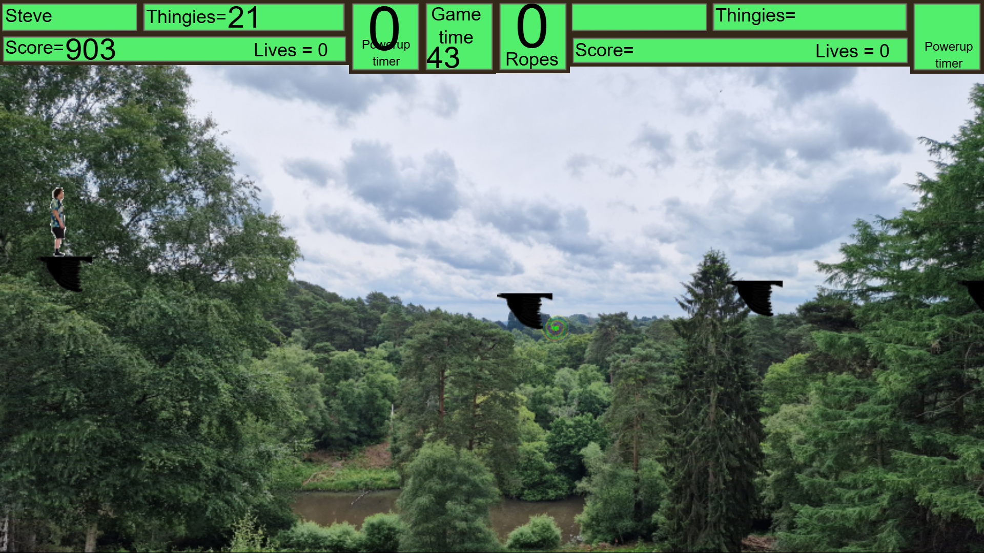 Control Steve and jump to stay on the crows, collect the thingys and stay alive for as long as you can to increase your score.